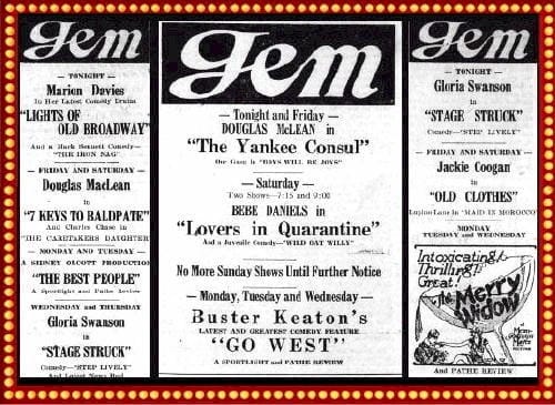 The debate went on over several weeks. In the end, City Council said the 1879 law had been written for stage productions and didn’t apply to movies. Alderman Richard Broad summarized the affair as “much ado about nothing.”