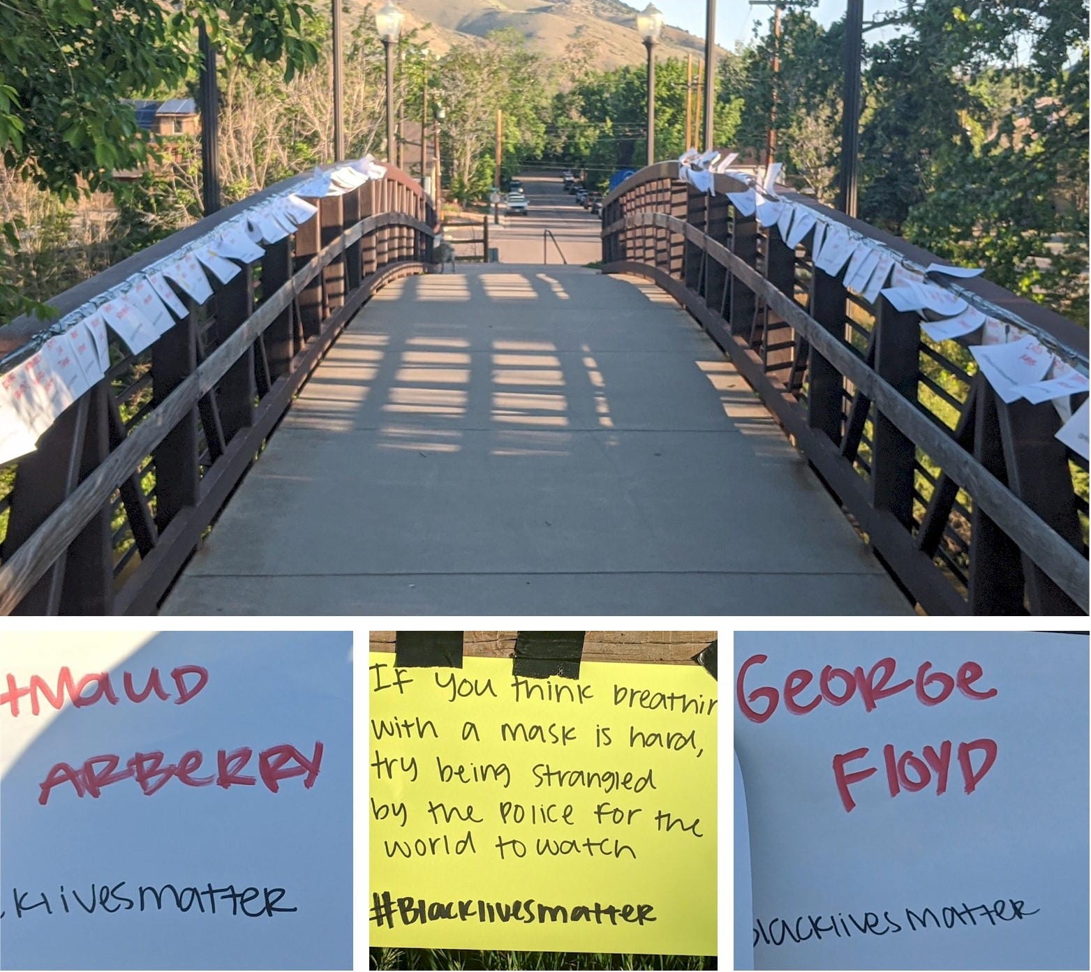 Thursday morning, Golden citizens awoke to find that the Billy Drew bridge had been turned into a temporary installation recognizing George Floyd’s death. The bridge was lined with names of black people killed by police officers. Each was tagged with #BLACKLIVESMATTER. We are living through momentous historical events.
