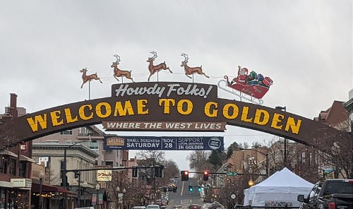 The Welcome Arch was built in 1949. Originally, “Welcome to Golden” was outlined in neon. People were excited about the new landmark, and the 1100 block of Washington Avenue immediately became the visual center of the City. The Chamber had spearheaded the arch, and as Christmas approached, they wanted to make the arch the focal point of the seasonal celebrations. They decided that Santa and his reindeer were just what we needed.