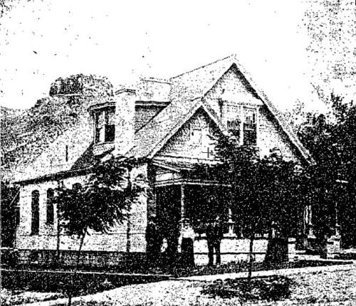 The January 18, 1906 Colorado Transcript featured the new house at 14th and Washington, home of Mr. and Mrs. W. A. Rhoads. The article reported that Mr. Rhoads had designed the house and done all the carpentry work himself. It described the masonry as “purple Golden pressed brick.”