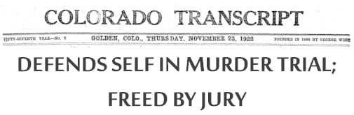 The November 23, 1922 Colorado Transcript reported that Andrew Anderson, a Jefferson County farmer, had been acquitted of murder.