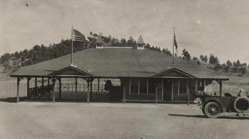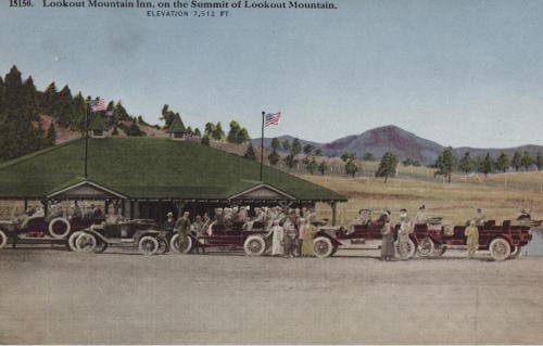 The Lookout Mountain Inn was located near the top of the funicular and on the Lariat Loop Road. The Wagenbach family owned the business, and hosted dances with big name bands there.