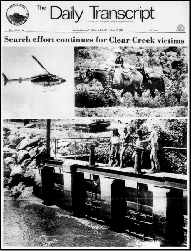The June 27, 1978 Golden Transcript reported that two lives had been lost in Clear Creek, and the sheriff’s Mounted Posse was leading a search effort.