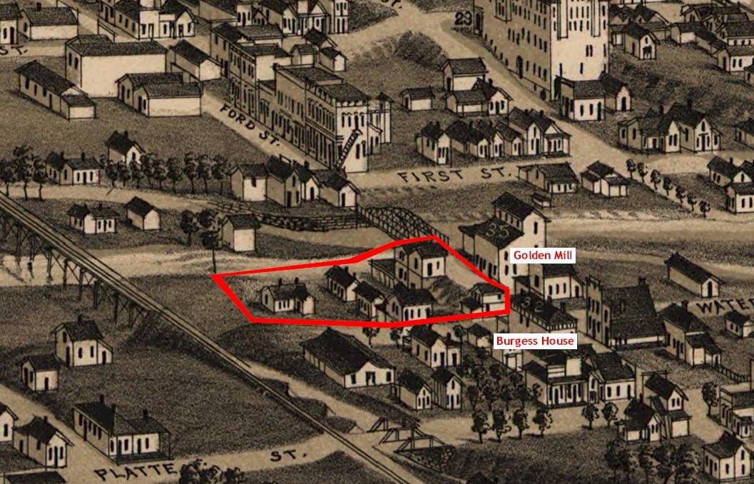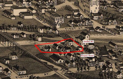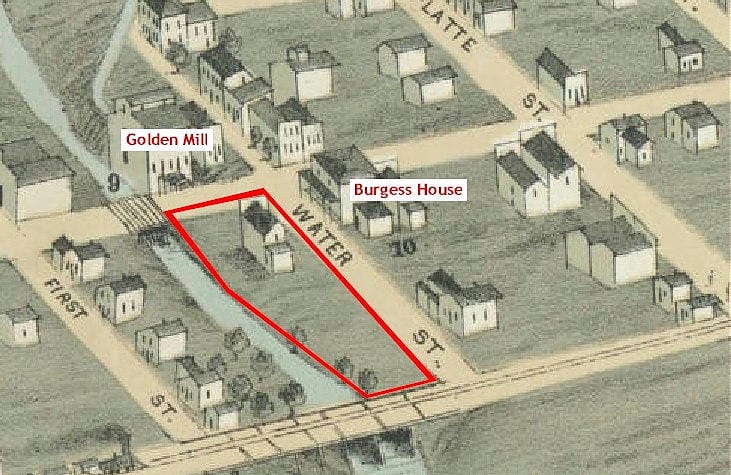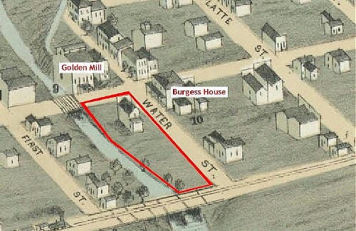 Despite its vulnerability to flooding, this land was used for residences for most of the City’s history. The 1873 Birdseye View map shows one two story building between Water Street and the Creek. By the time the 1882 map was drawn, many more structures had been built.