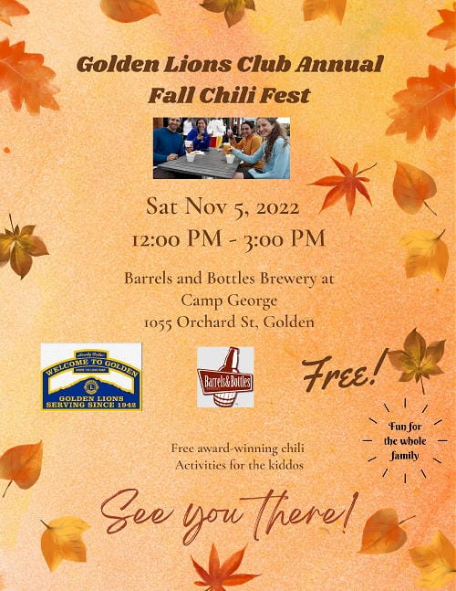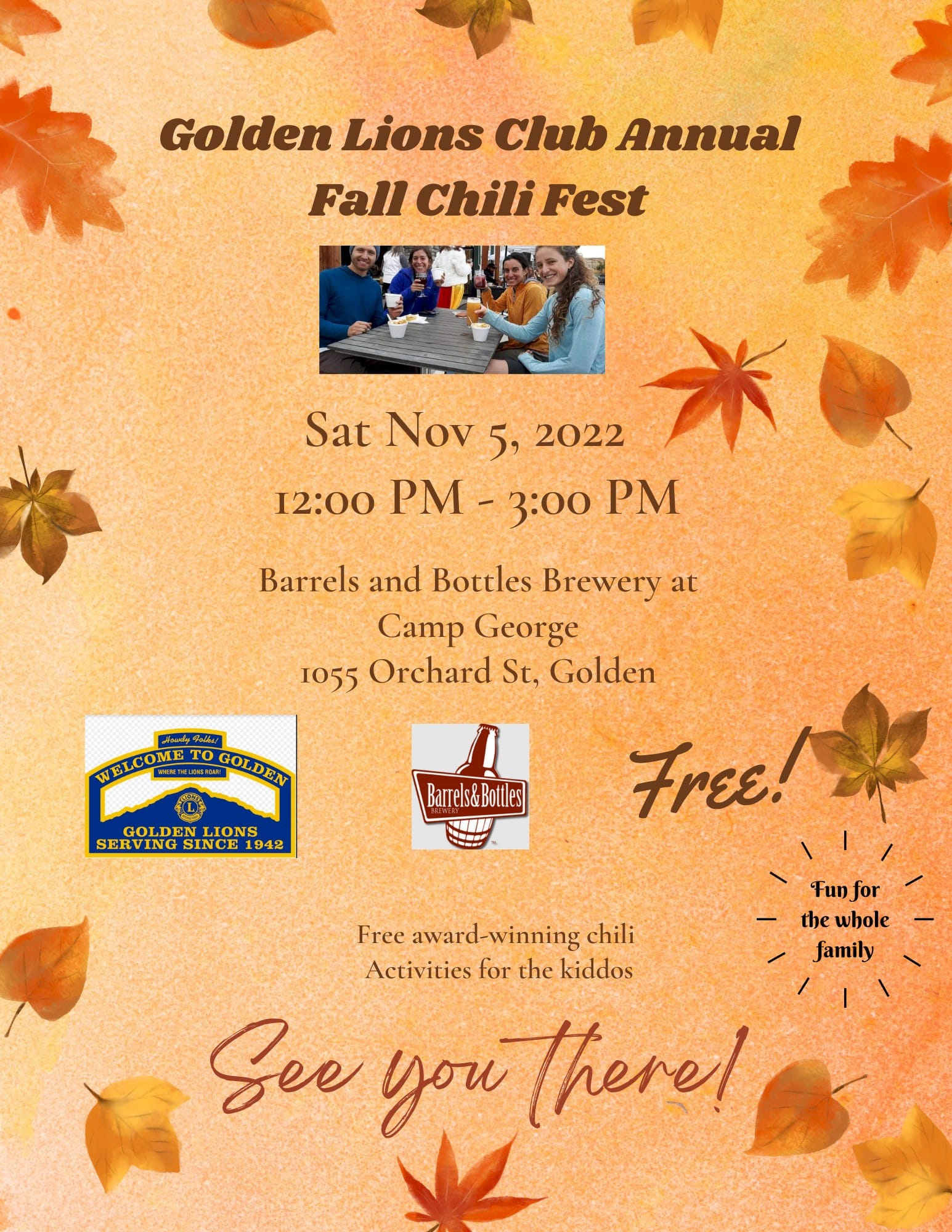 12-3PM Golden Lions Club Annual Fall Chili Fest @ Barrels & Bottles Camp George West (map)