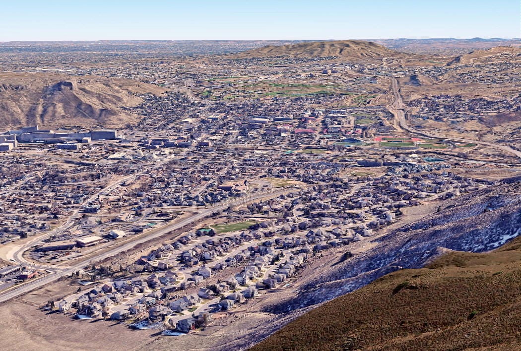 Coors did develop the area to include “very nice houses.” The entire project is known as “Canyon Point,” and the residential neighborhood west of Highway 93 is called “Mountain Ridge.” The streets are not a grid; they are winding, but presumably wide enough to accommodate fire trucks.