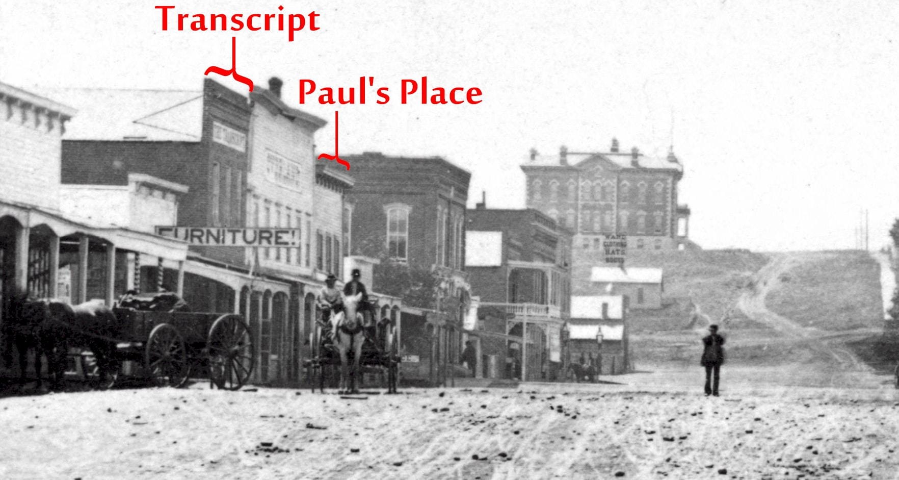 In 1890, he purchased a log building on the site now occupied by the Buffalo Rose restaurant. There, he opened a “cigar and banking store” called “Paul’s Place.” Evidently he sold beer as well.