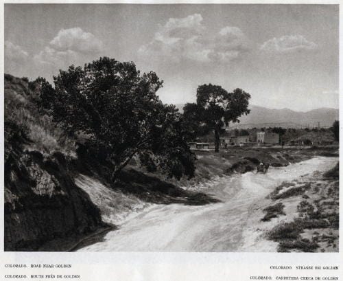 An article in the July 19, 1917 Colorado Transcript brought to light an interesting fact. A car was wrecked and two people injured just east of Golden on 44th St.. The driver of the car, seeing oncoming headlights, pulled aside to let the other car pass. Unfortunately, the tall grass at the side of the road disguised the fact that the road dropped off into a steep hill. The car rolled and the occupants had to be pulled out from beneath the vehicle. Here’s what I found interesting about that story: in 1917, 44th Street was only wide enough for one vehicle.