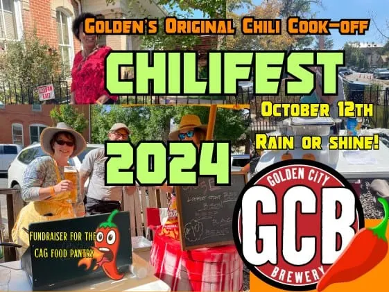 Join Golden City Brewery and 12 chili chefs as they compete for Best Chili in Golden and win beer for a year! This fundraiser is to support the food pantry at the Golden Pantry and Thrift (formerly CAG). More information