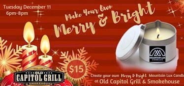 From 6-8PM tonight, Mountain Lux Candles will be at the Old Capitol Grill. Make a custom-scented candle for yourself, or as a gift!