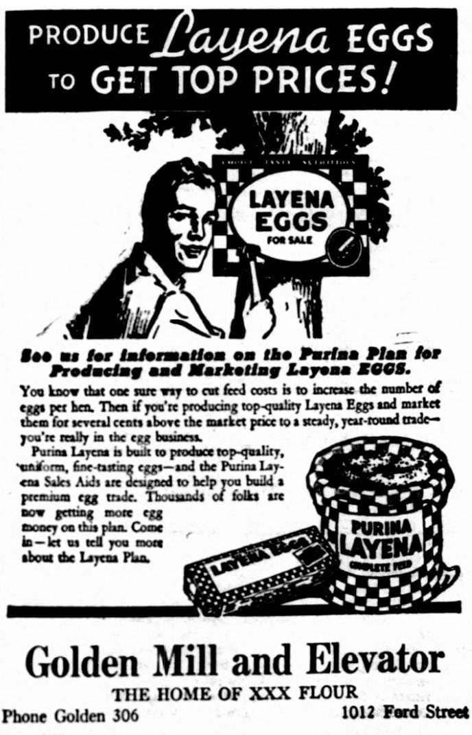 The February 11, 1943 Colorado Transcript announced that 25% more chicks would be needed in 1943. The United States was producing food for war-torn Europe as well as domestic consumption. The Golden Mill stood ready to provide premium feed to Golden’s poultry-producing households.