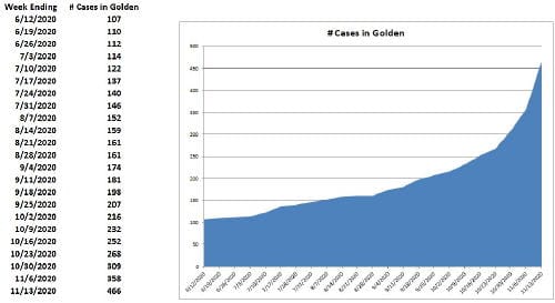 JCPHD updates these numbers Monday through Friday at about 3 PM. Here’s a summary of growth over the past week, based on Jeffco Public Health’s Case Summary Page: