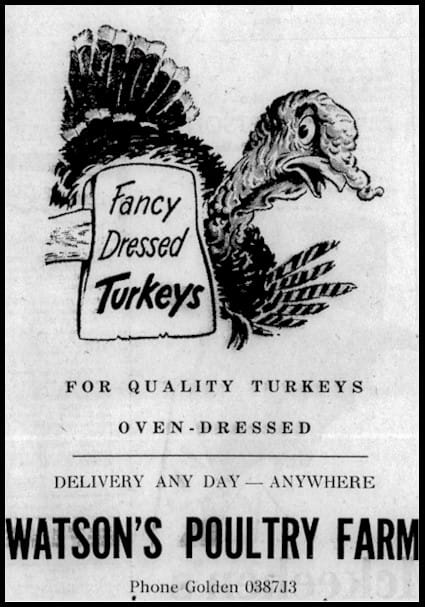 Watson’s Poultry Farm was offering to deliver oven-dressed turkeys, any day, anywhere.