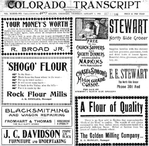 Many thanks to the Golden History Museum for providing the online cache of historic Transcripts, and many thanks to the Golden Transcript for documenting our history since 1866!