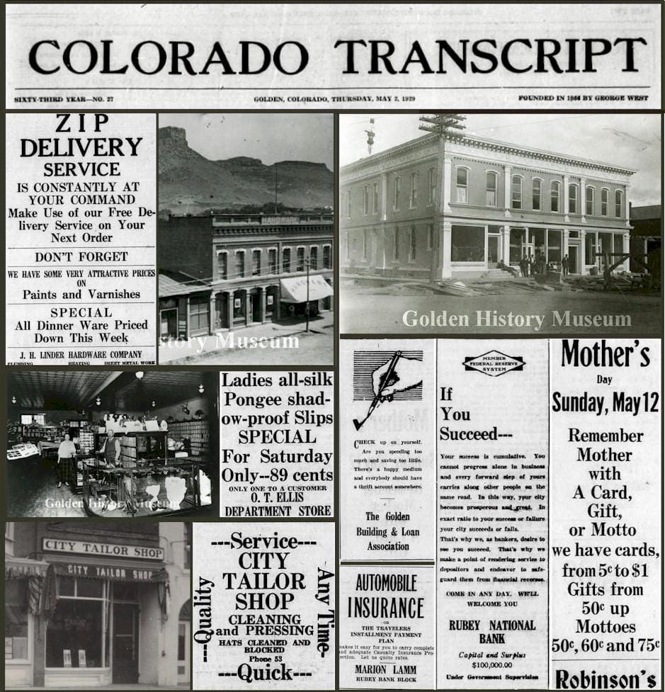 The May 2, 1929 Colorado Transcript includes, of course, lots of ads for long-gone businesses. They don’t include photographs, but I enjoy picturing where they were located. So here they are again!