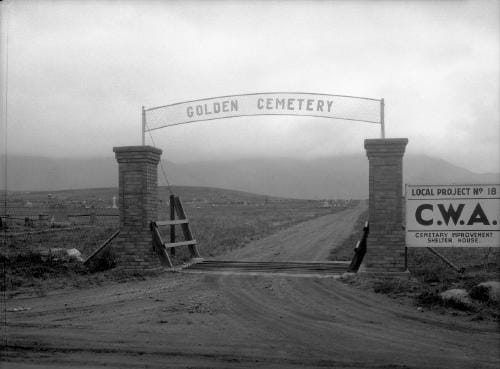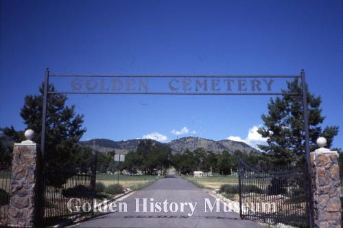 The September 12, 1929 Colorado Transcript announced that the Golden Cemetery was getting a new metal sign, “…with the words ‘Golden Cemetery,’ which will be mounted over the two gate posts at the cemetery. This was secured through the efforts of William Woods, Golden mortician.“