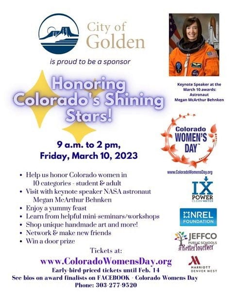 Tickets are now available for the Colorado Women’s Day luncheon, with keynote speaker Astronaut Megan McArthur Behnken. Buy before February 14th for early bird pricing!