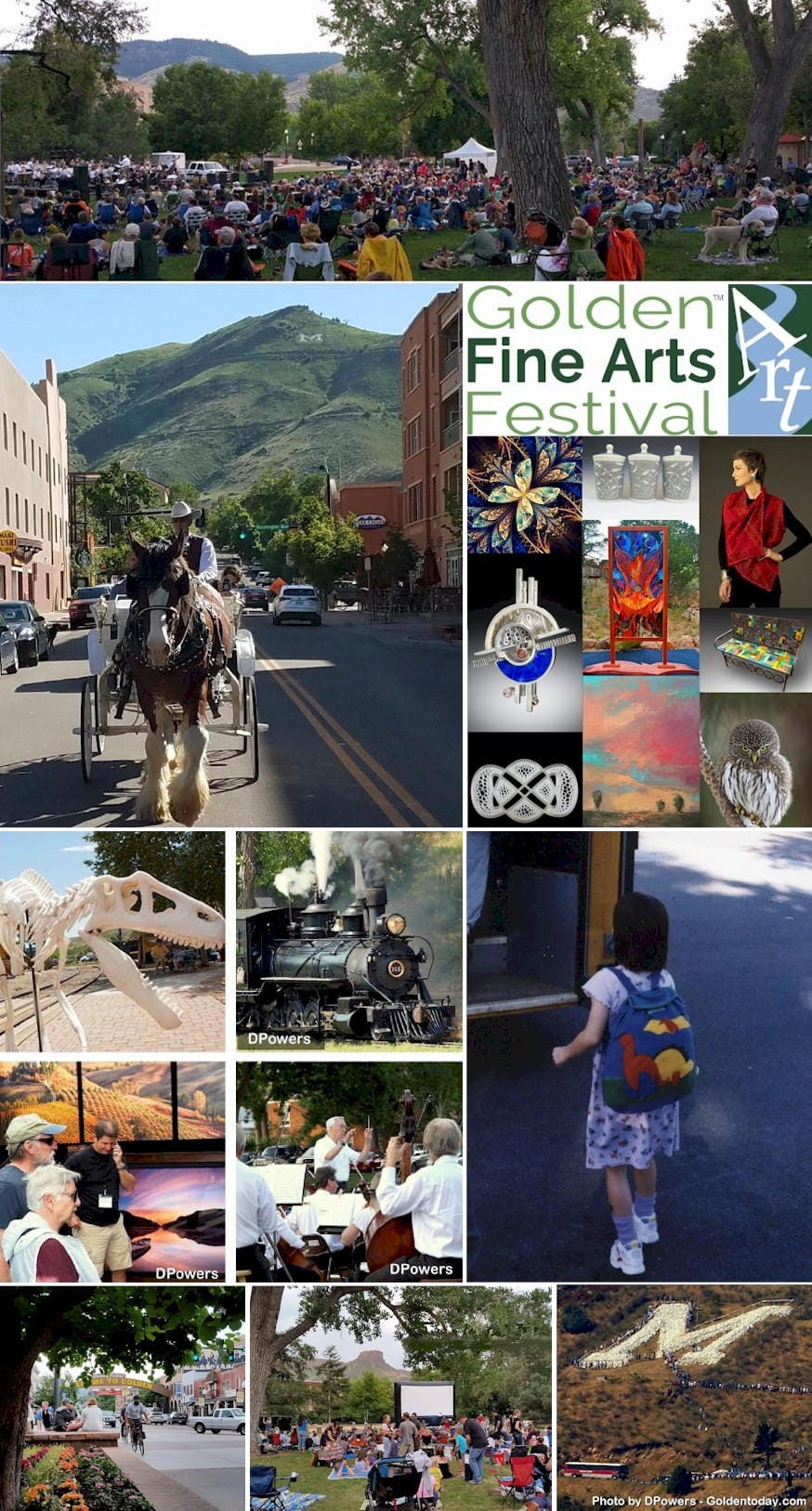 Free carriage rides downtown. Summer Yoga on the Lawn at Golden City Brewery. Fine Arts Festival. Golden Hayride providing shuttle service. Under the M Farm Stand open. Dinosaur Express Train at the Railroad Museum. Final performance of Fairfield at Miners Alley Playhouse. Robbery at the Railroad Museum. Jefferson Symphony Pops Concert in Parfet Park.