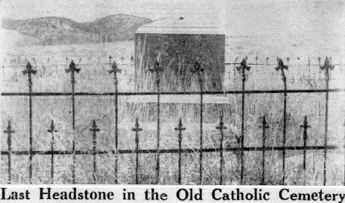 In 1964, fifty-three bodies were exhumed from the original Catholic cemetery and moved to Mt. Olivet. In the 1980s, the parish built their new church on the former cemetery land.