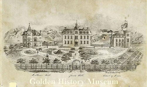 Although the School of Mines building did not burn, the students joined the Matthews and Jarvis pupils in moving to downtown Golden for classes. The school acquired land at 15th and Cheyenne as the school’s permanent home. There were various attempts to “steal” the school over the years, but Golden held fast and it has remained here.