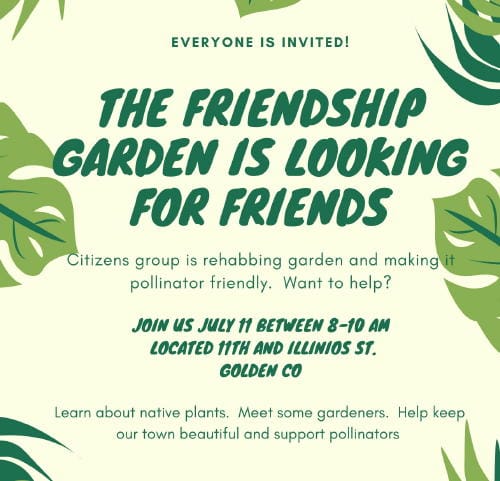 A citizens’ group is rehabbing the Friendship Garden and making it pollinator friendly. Want to help? Join us to learn about native plants, meet some gardeners, help keep our town beautiful, and support pollinators. All are welcome to come by to help or just chat.