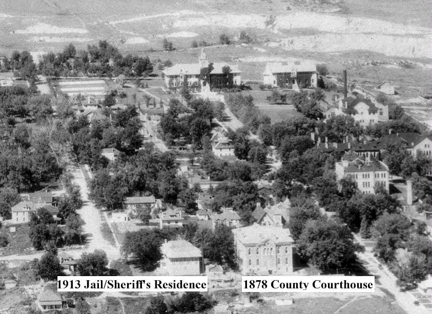 The July 11th Transcript described the ceremonial opening of the cornerstones from the 1878 courthouse and the 1913 sheriff’s residence/jail. Unfortunately, cornerstones are often subject to the vicissitudes of time and moisture, and unveilings are often anti-climatic. So it was in this case.