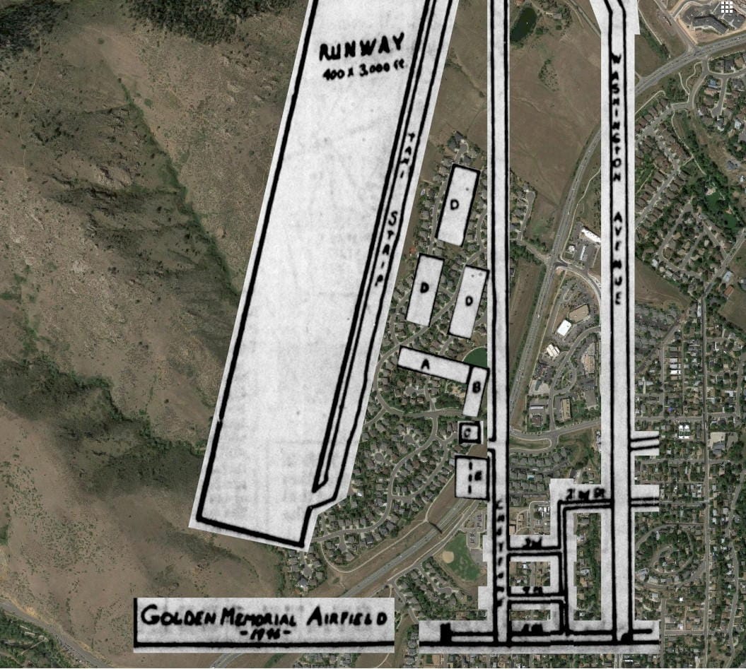 Over the years, I have heard a few times that Golden used to have an airport, up at the northwest corner of the city. It seemed rather amazing to think of an airport being that close to Golden (and that close to the mountains). Yesterday, I decided to track down this elusive airport.