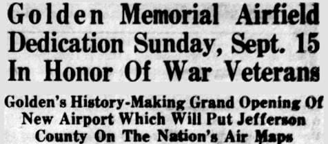 Apparently the Golden Memorial Airfield was more dream than plan. When the new board took control of the Chamber the following January, they announced that the airfield was not a Chamber project, that no Chamber funds would be spent on construction of such a project, and that any “indebtedness now due” was not the Chamber’s responsibility.