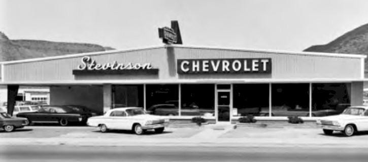 The seller was the Steve Frederick Chevrolet Co. Frederick had recently sold his dealership to Chuck Stevinson, but Coors had no immediate plans to occupy the property, so Stevinson continued to operate on Ford Street until about 1970.