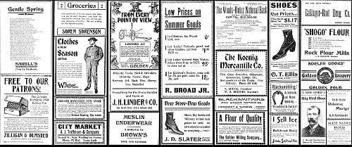For a historian wanting to learn about Golden’s early businesses, the first decade of the 20th century was a golden age. Prior to that time, the Transcript consisted mostly of dense text in tiny fonts. In the early 1900s, display ads were assuming a bigger role in the paper. By the 19-teens, the paper was choked with national (non-local) business advertising–particularly patent medicines–but in 1903 many Golden businesses were advertising in the Transcript.