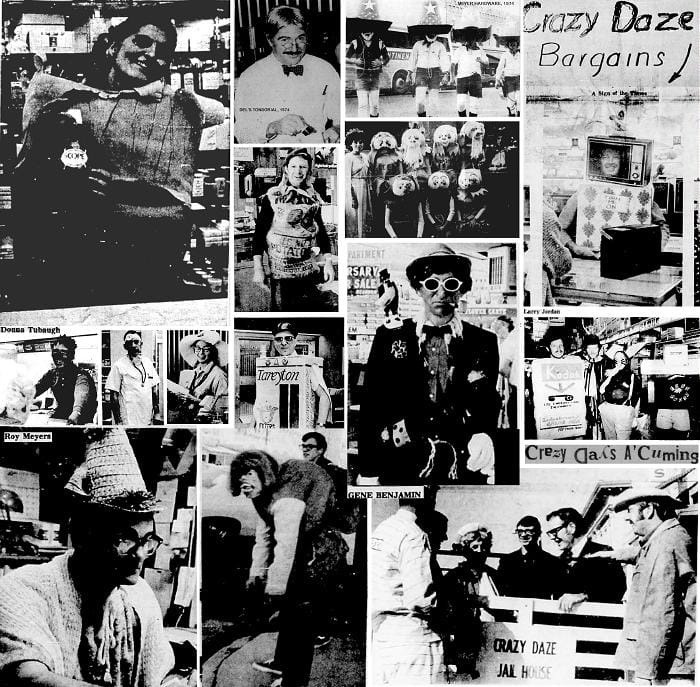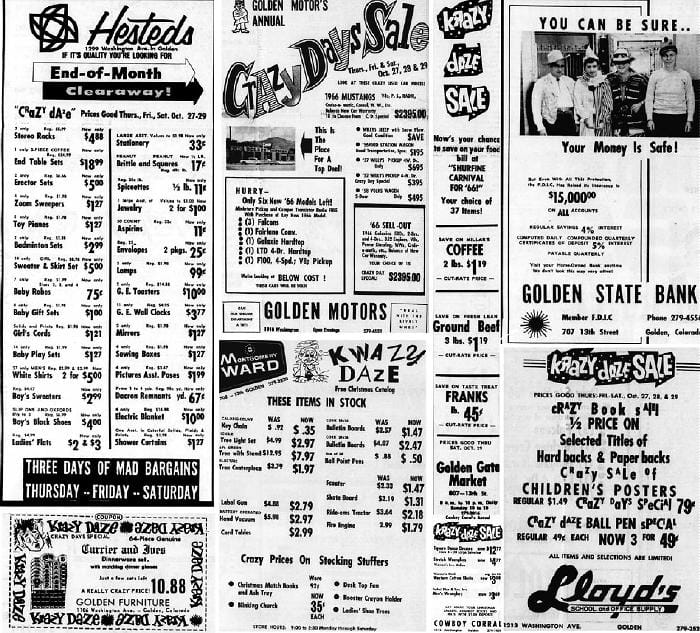 The October 27, 1966 Colorado Transcript was filled with ads for Krazy Daze. This promotion was launched by the Chamber in 1963. It included sales in the stores and some really wild costumes by the downtown merchants. The downtown denizens held a contest for best costume in various categories. The event culminated with a party for the downtown employees.