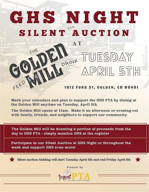 11AM-closing GHS Night & Silent Auction @ Golden Mill