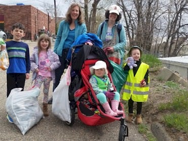 During Earth week 4 moms and 7 kids from the MOMS Club of Golden collected 3 bags of trash and 2 bags of recycling along Clear Creek and Washington Ave.