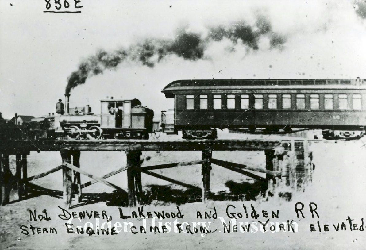 In 1891, the Denver, Lakewood, & Golden began running from Denver to Golden. Its right of way ran through Lakewood, entered Golden via South Golden Road, and terminated at the northeast corner of 13th and Washington–the spot currently occupied by Indulge Wine Bar. The DL&G ran coal-powered steam locomotives.