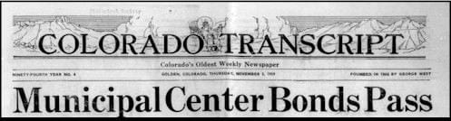 Thanks to the Golden History Museum for providing the online cache of historic Transcripts, and to the Golden Transcript for documenting our history since 1866!