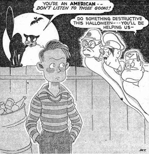 Perhaps the men who have boasted to their sons of their youthful Hallowe’en pranks now regret it.