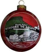 Since the early-1990s, I’ve bought a Leadership Golden ornament every year. It’s always fun to see which Golden scene or building they’ve chosen to depict–the Astor House, Guy Hill School House, the 1950s Golden High School, the 1920s Golden High School, Guggenheim Hall, and so many other Golden gems. After several years of collecting, I learned that Avenue Gifts had a few of the older ornaments, so I was able to acquire some of the years I was missing. The only one I was unable to find was the very first one. Two years ago, Donna Owen at Avenue Gifts mentioned that she had recently received a complete set, including the first one. I immediately bought it, so now I have a complete set–woo-hoo!