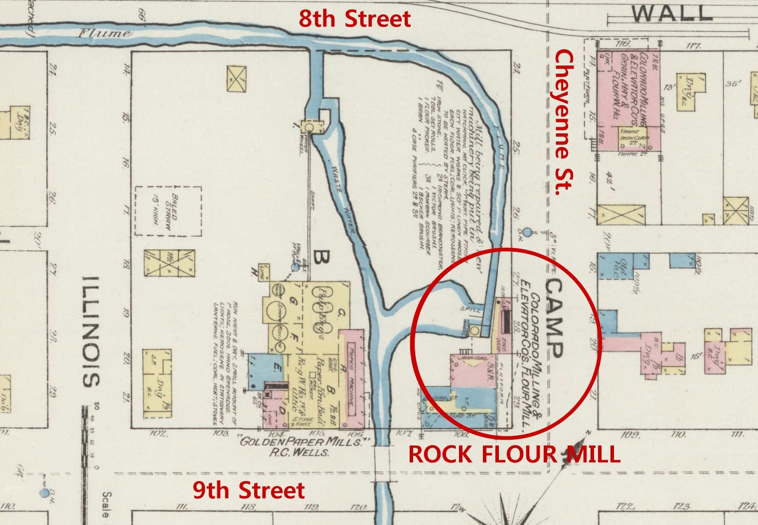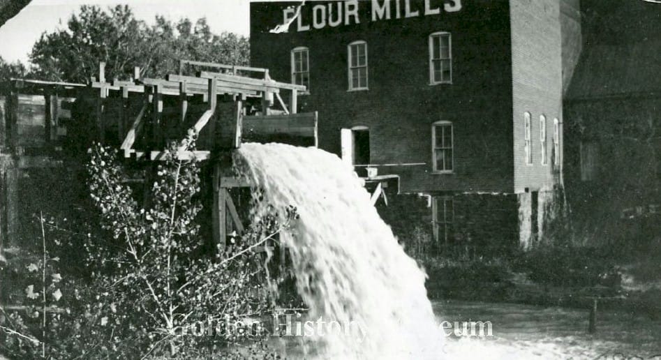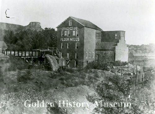 The Rock Flour Mill was powered by a mill race–a channel of water diverted from Clear Creek. The mill race also powered the Golden Paper Mill, which was located just west of the Flour Mill.