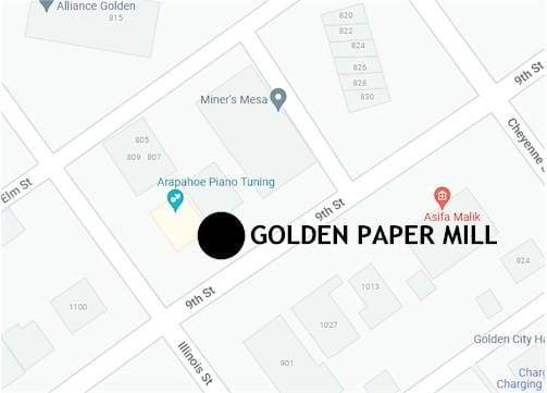 The Golden Paper Mill was erected on 9th Street at the same time two other mills were being built–the Rock Flour Mill and a saw mill. All three were powered by a flume of water diverted from Clear Creek. All were in operation by late 1867 or early 1868.