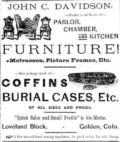In 1880, Charles Ziegler decided to add a line of coffins to his furniture store. That fall, John C. Davidson bought the business–both furniture and funeral supplies–from Ziegler. At that time, the store was located in the Loveland block (where the Old Capitol Grill is). A year later, he moved to the east side of the 1200 block; in 1888, he moved to Ford Street and at some point in the next decade he moved to 1100 Washington Avenue.