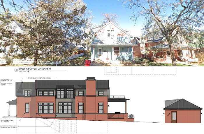 The second request for a Certificate of Appropriateness concerns the home at 1014 12th Street (map). This home was built in 1893 and is considered a contributing structure to the 12th Street Historic District. The owners propose retaining the front porch and two front rooms and demolishing the rest of the house. They also plan to replace the existing detached garage.