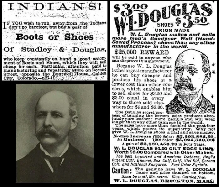 W.L. Douglas spent his early years as a cobbler in Golden. His shop was located on 12th Street, about where the post office stands today. According to a November 17, 1904 Transcript article, Douglas sold his Golden business in 1868 or 1869 and left Golden with $470. From here, he went to Massachusetts and started a shoe factory. The business did well and Douglas became a wealthy man. He served in the Massachusetts state legislature and eventually as Governor of the State of Massachusetts. He was also known for his philanthropic works. He died in 1924.