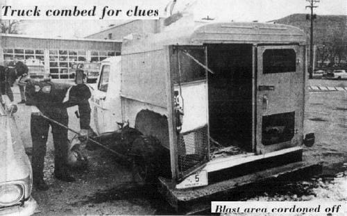 The March 31, 1975 Golden Transcript featured a front page spread about the bombing of the City’s dog warden truck. “The blast, which went off at 10:23 Sunday night, could be heard over five miles away. A cat which had been caged in the truck was killed in the explosion.”