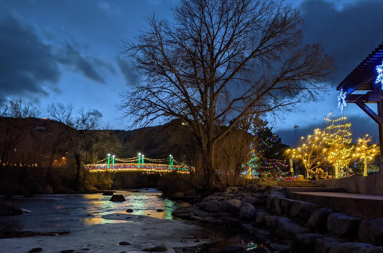 Golden’s impressive holiday lights transform the charming town into a winter wonderland with downtown, the Clear Creek Walking Path, Golden History Park, Parfet Park and the Visitors Center spectacularly illuminated with an estimated 45,000 bulbs. A single giant evergreen tree in front of the Golden Visitors Center is wrapped in approximately 5,000 lights all on its own. Start a new family tradition and bundle up, pick up hot cocoa at a Golden coffee shop, and enjoy an evening walk with holiday lights reflecting in the icy waters of Clear Creek and in the downtown shop windows.