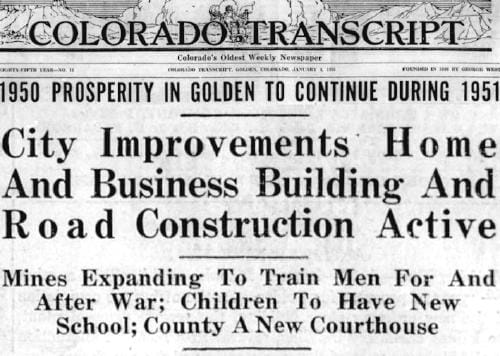 Many thanks to the Golden History Museum for providing the online cache of historic Transcripts and to the Golden Transcript for documenting our history since 1866!