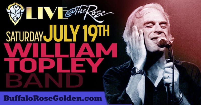 - 7PM William Topley Full Band @ Buffalo Rose (main venue)