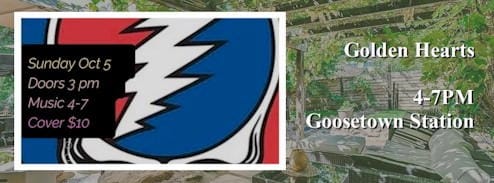 - 6:30-9:30PM The Golden Hearts @ Goosetown Station