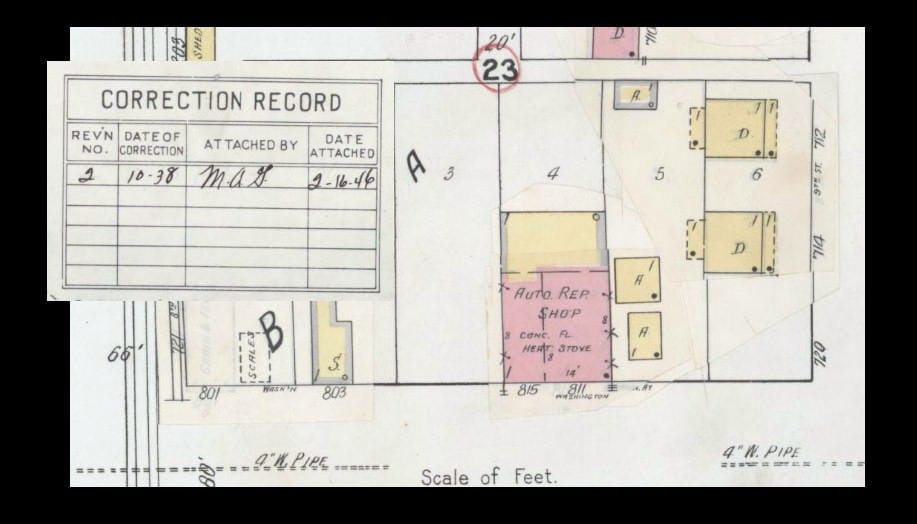 The last Sanborn Map was published in 1938. By that time, the Auto Repair Shop had been enlarged.