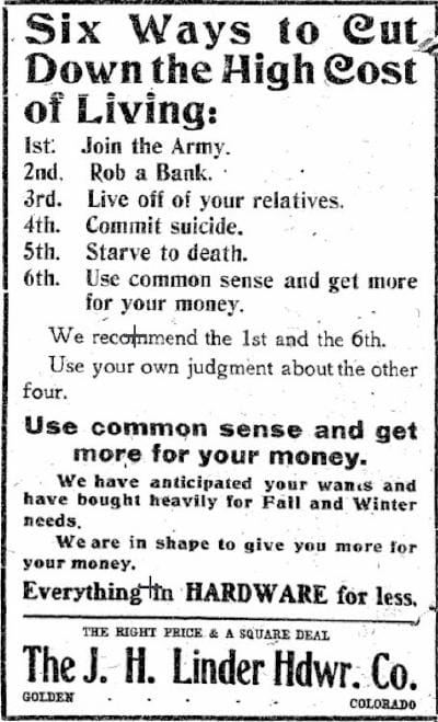 The October 11, 1917 Colorado Transcript offered this sage advice from Linder Hardware: