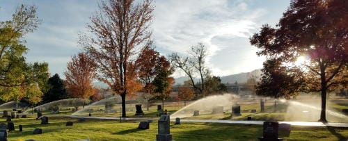 Until the mid-1930s, the Golden Cemetery lacked an irrigation system–which meant no trees. Despite the on-going Depression, then-Mayor A. E. Jones made cemetery improvements his personal mission. He asked the public for donations of pipe and cobbled together an irrigation system. Then he encouraged people to donate trees from their own yards. More trees were added in the 1950s, when the City transplanted dozens of evergreens from the Beaver Brook property.